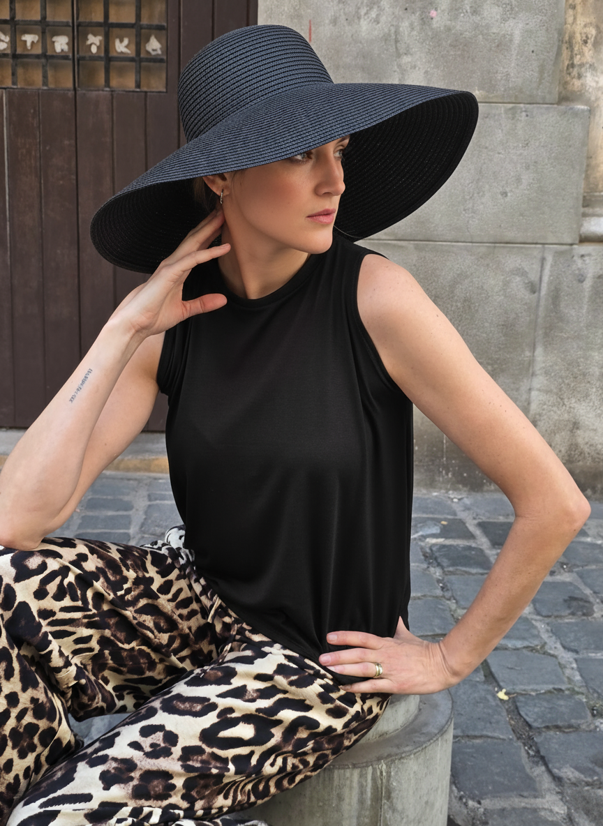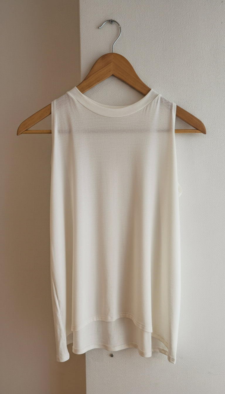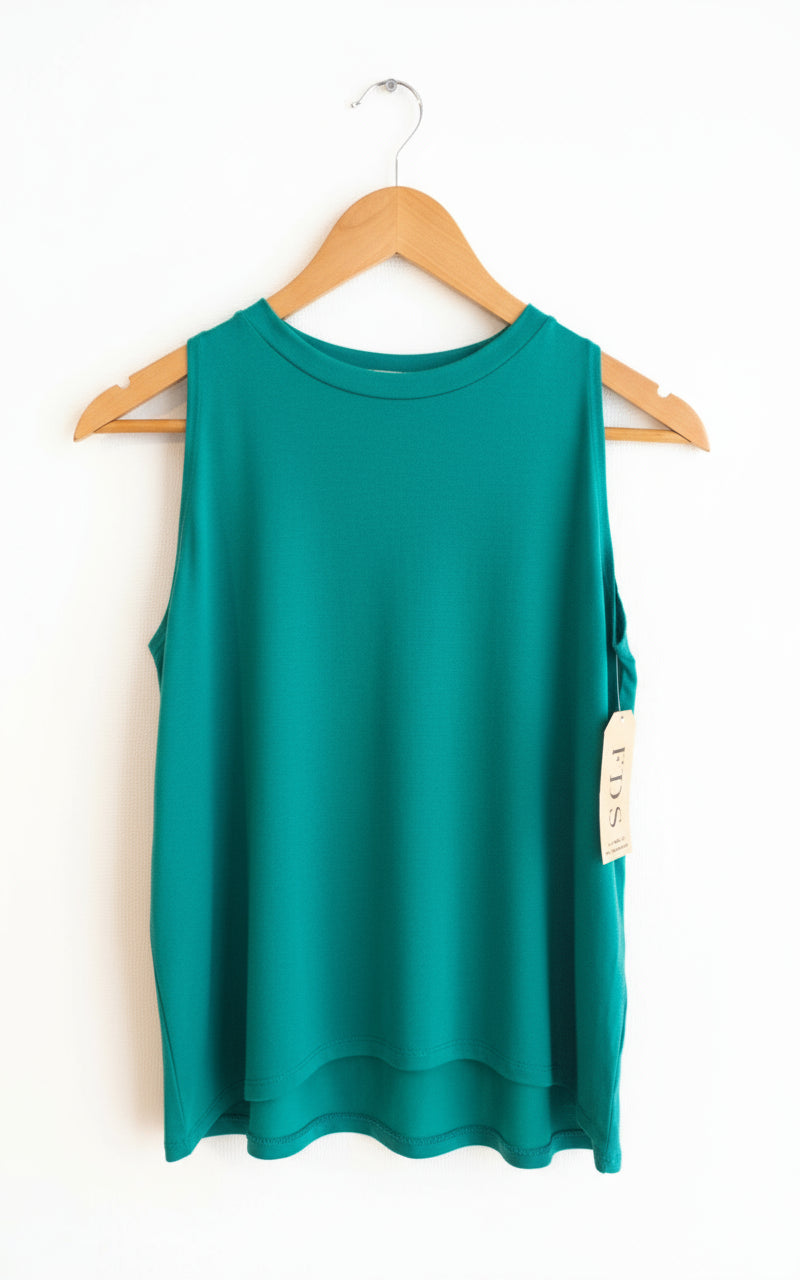 Polera suelta de algodón cuello subido sin mangas. Quedan preciosas puestas!