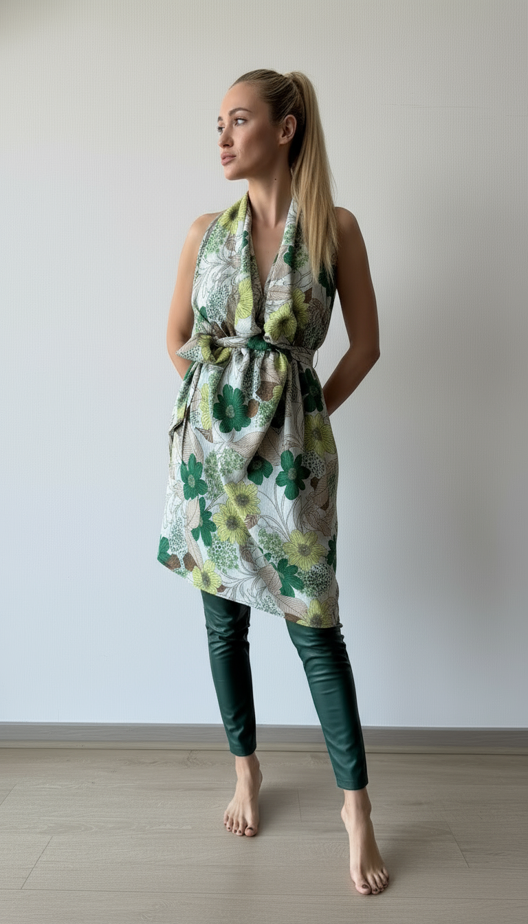 Blusa gasa amarrada al cuello con espalda descubierta. Talla única. Trae un lazo de la misma tela.