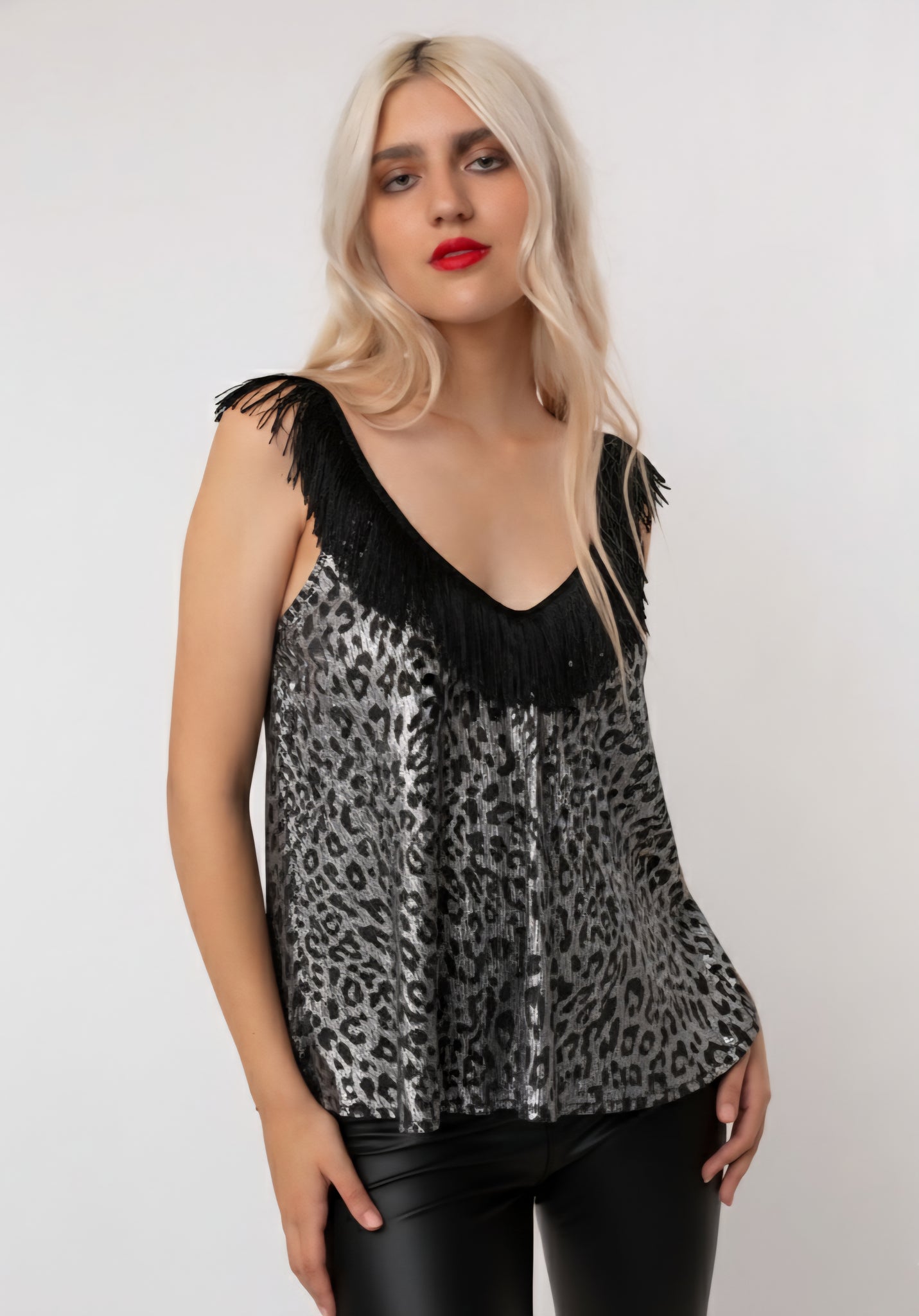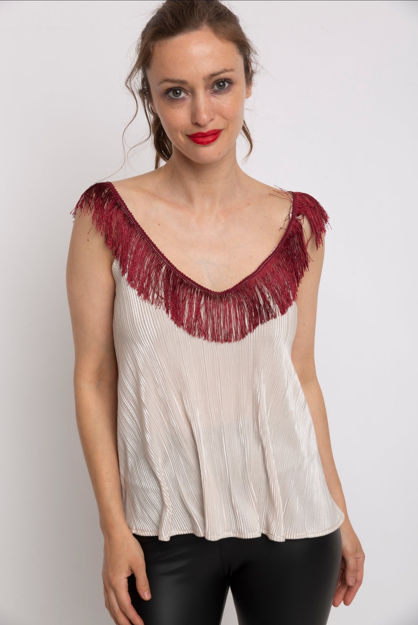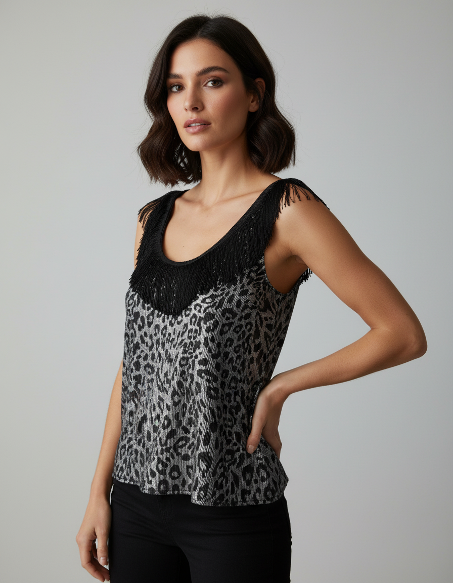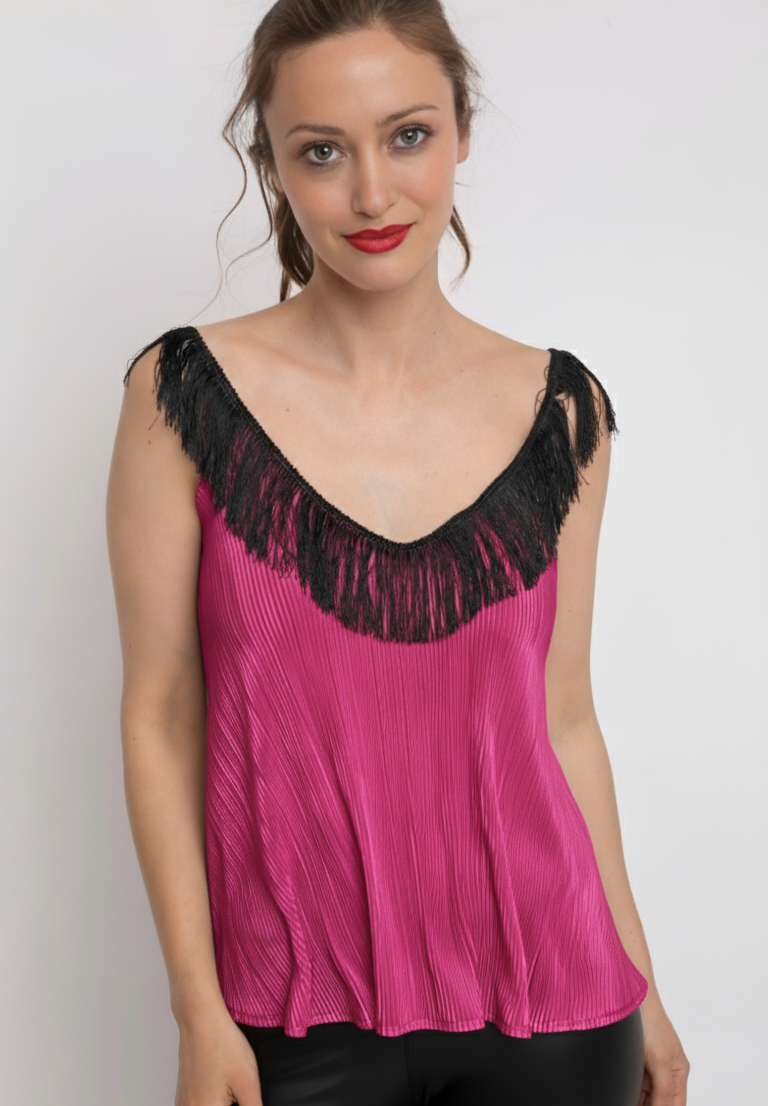 Polera suelta con tirantes de flecos.