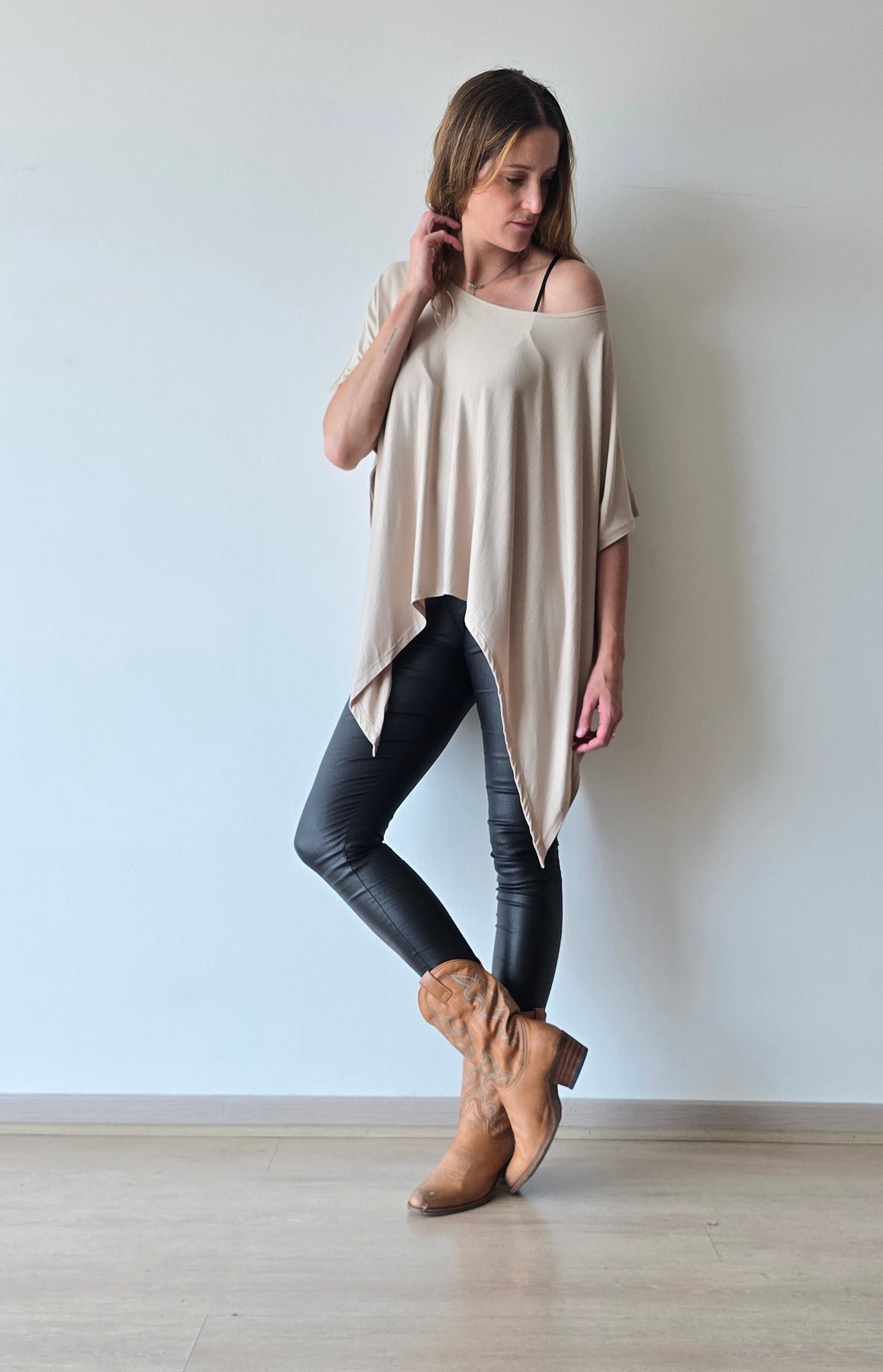 Polera suelta de algodón modelo oversize con lados más largos en varios colores. Quedan preciosas puestas!