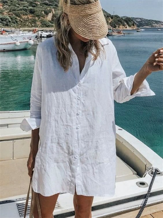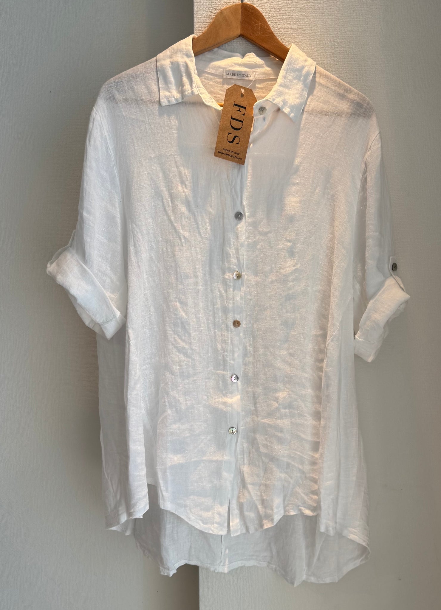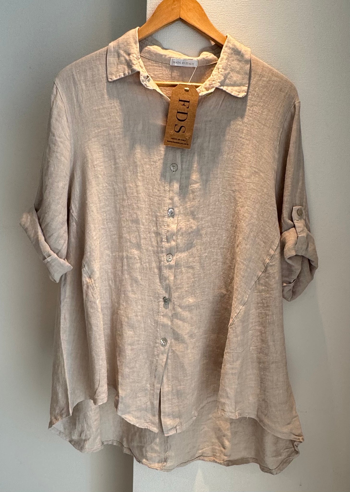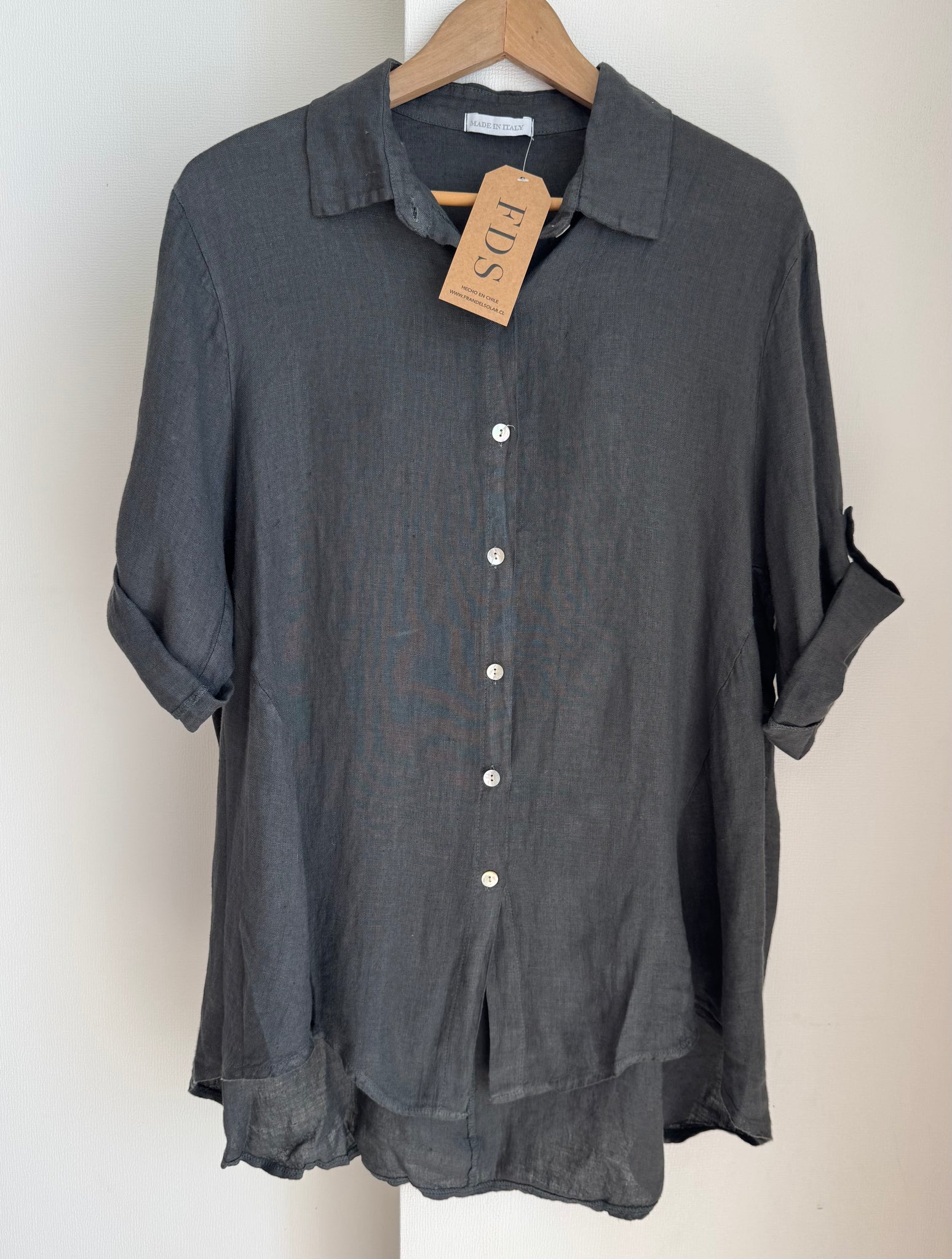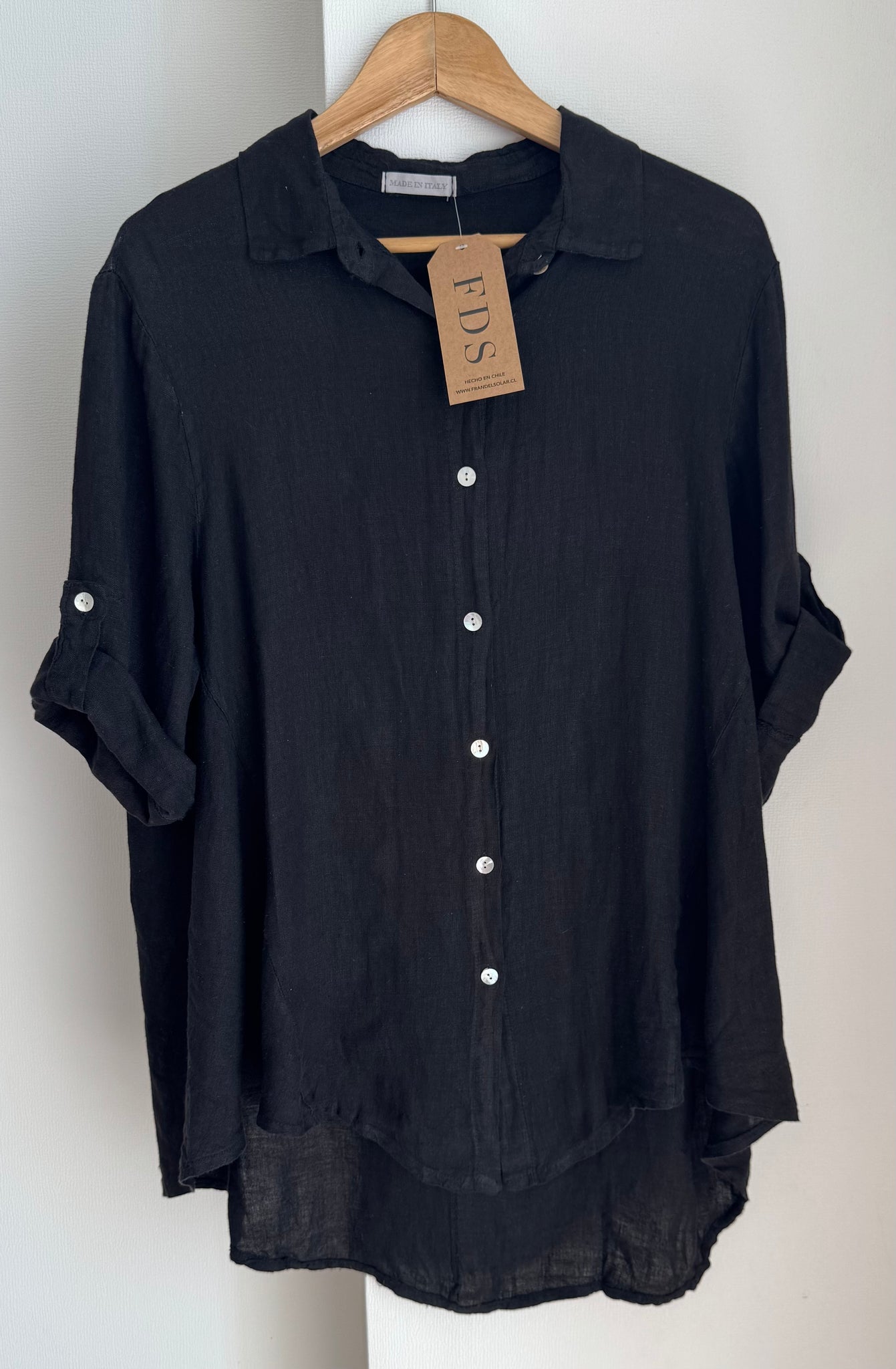 Blusón de lino suelto con botones y manga 3/4. Muy cómodo y fresquito. En 4 colores: blanco, negro, carbón y beige. Modelo oversize.
