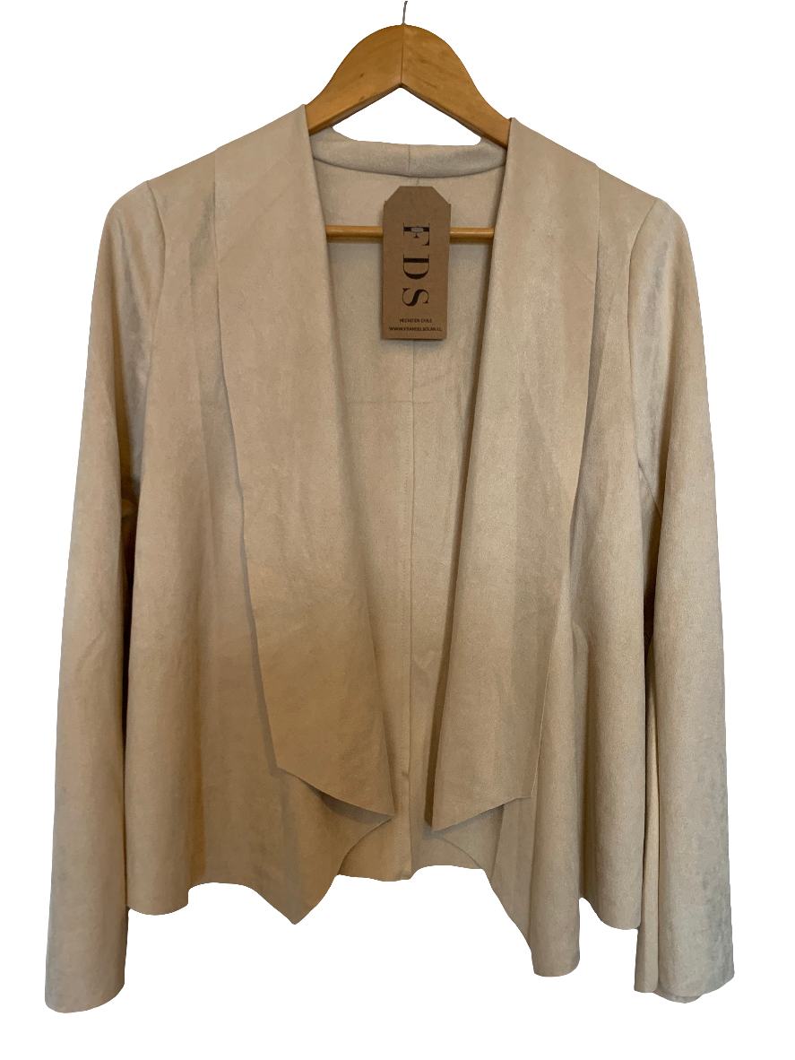 Chaqueta símil gamuza abierta en varios colores. Tiene muy linda caída y se adapta al cuerpo ya que es una gamuza elasticada.